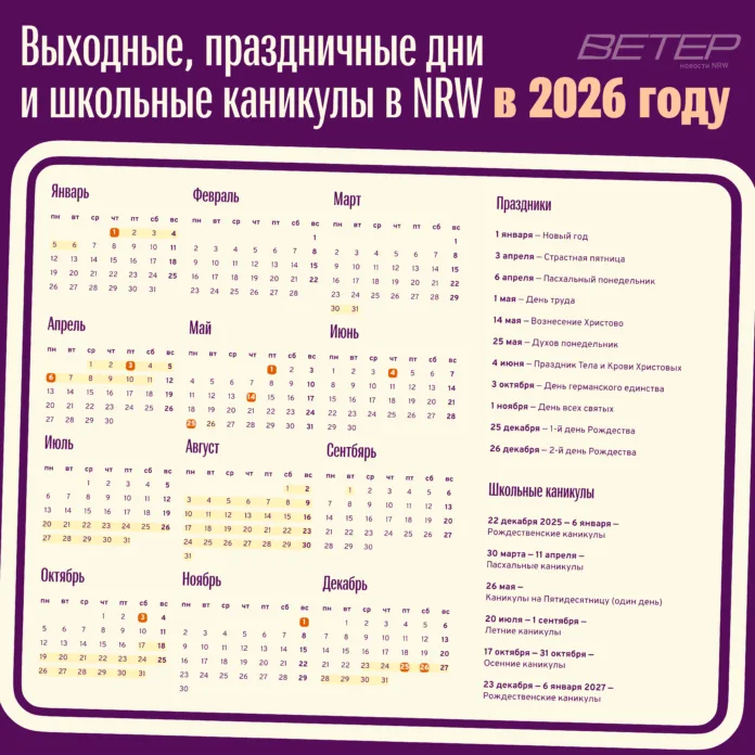 📌 Официальные выходные в NRW в 2026 году: