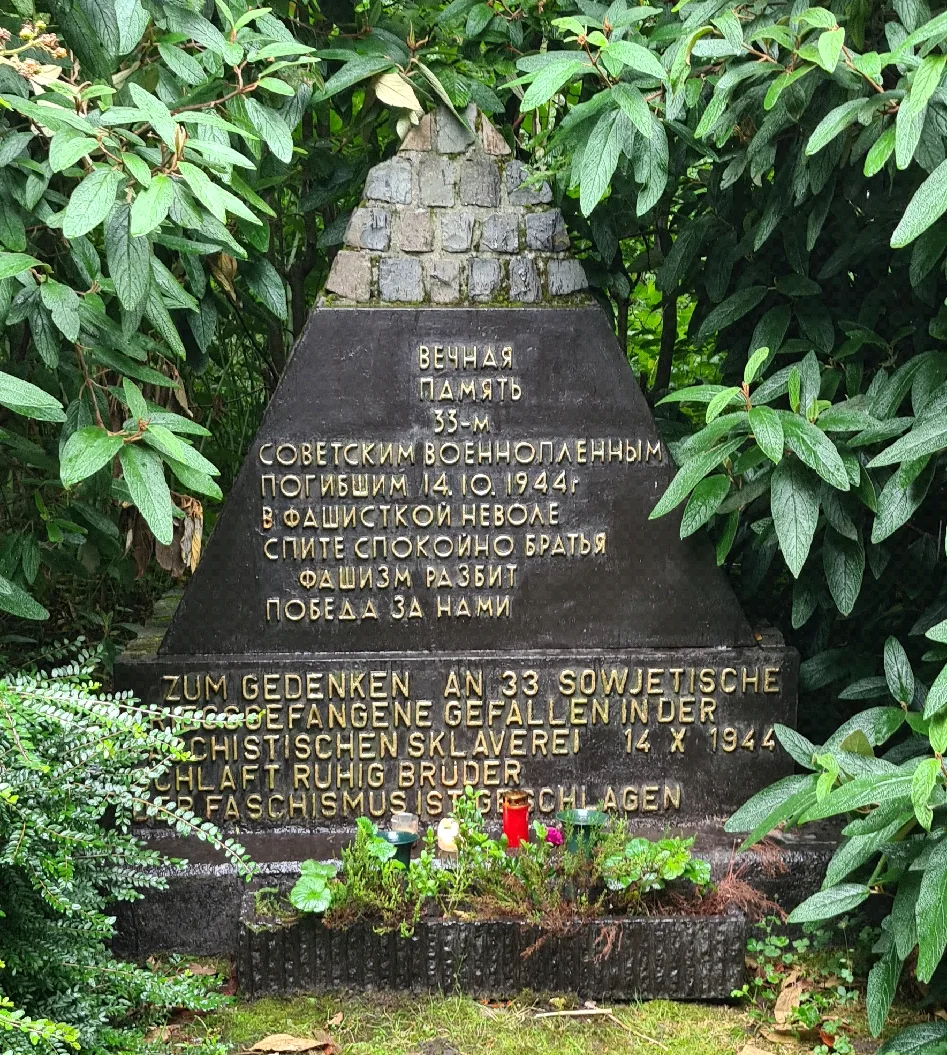 У мемориала, стоящего в отчаянно удалённом месте, лежали свежие цветы и горели свечи. Там же я увидел вход в бункер, в котором в детстве укрывался мой немецкий знакомый. С виду это была просто бесконечно длинная стена вдоль дороги, поросшая мхом и зеленью. Сначала я принял её за обычную земляную насыпь, но на деле это оказалось старое бомбоубежище.